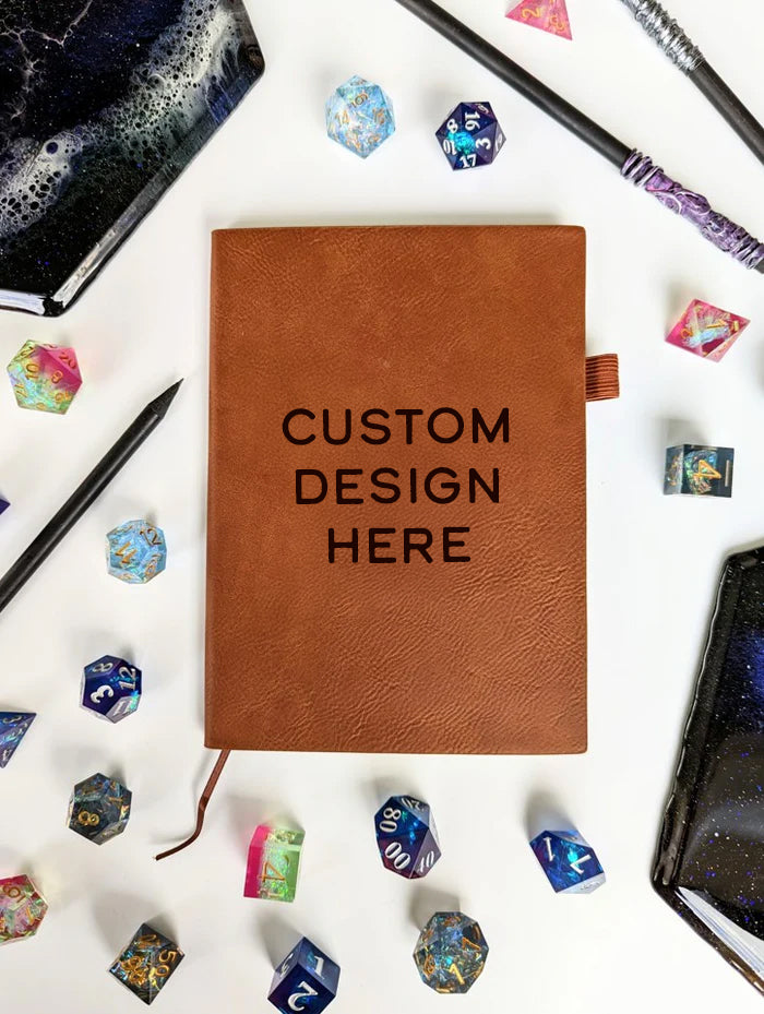 These mini sized journals have a lovely soft finish, with a beautiful dark engraving without the guilt of thinking about what happened to poor old Bessie's hide. If you like these you should check out our other lines, our vegan leather rolling trays and vegan leather dice boxes!