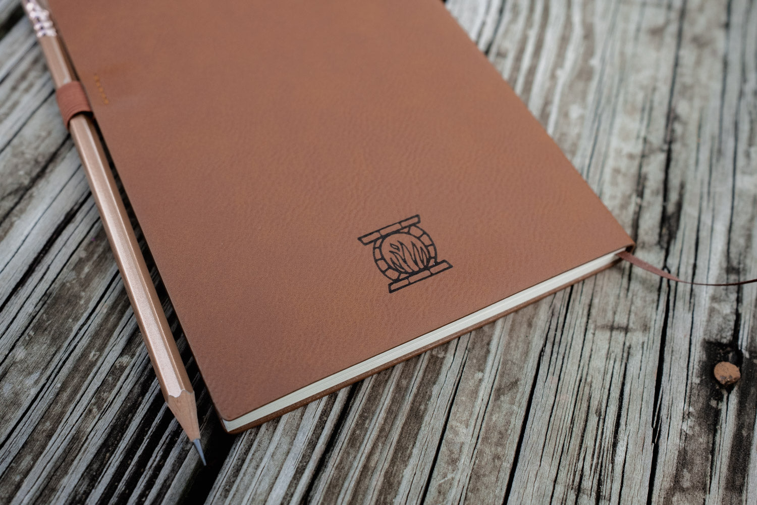 These mini sized journals have a lovely soft finish, with a beautiful dark engraving without the guilt of thinking about what happened to poor old Bessie's hide. If you like these you should check out our other lines, our vegan leather rolling trays and vegan leather dice boxes!