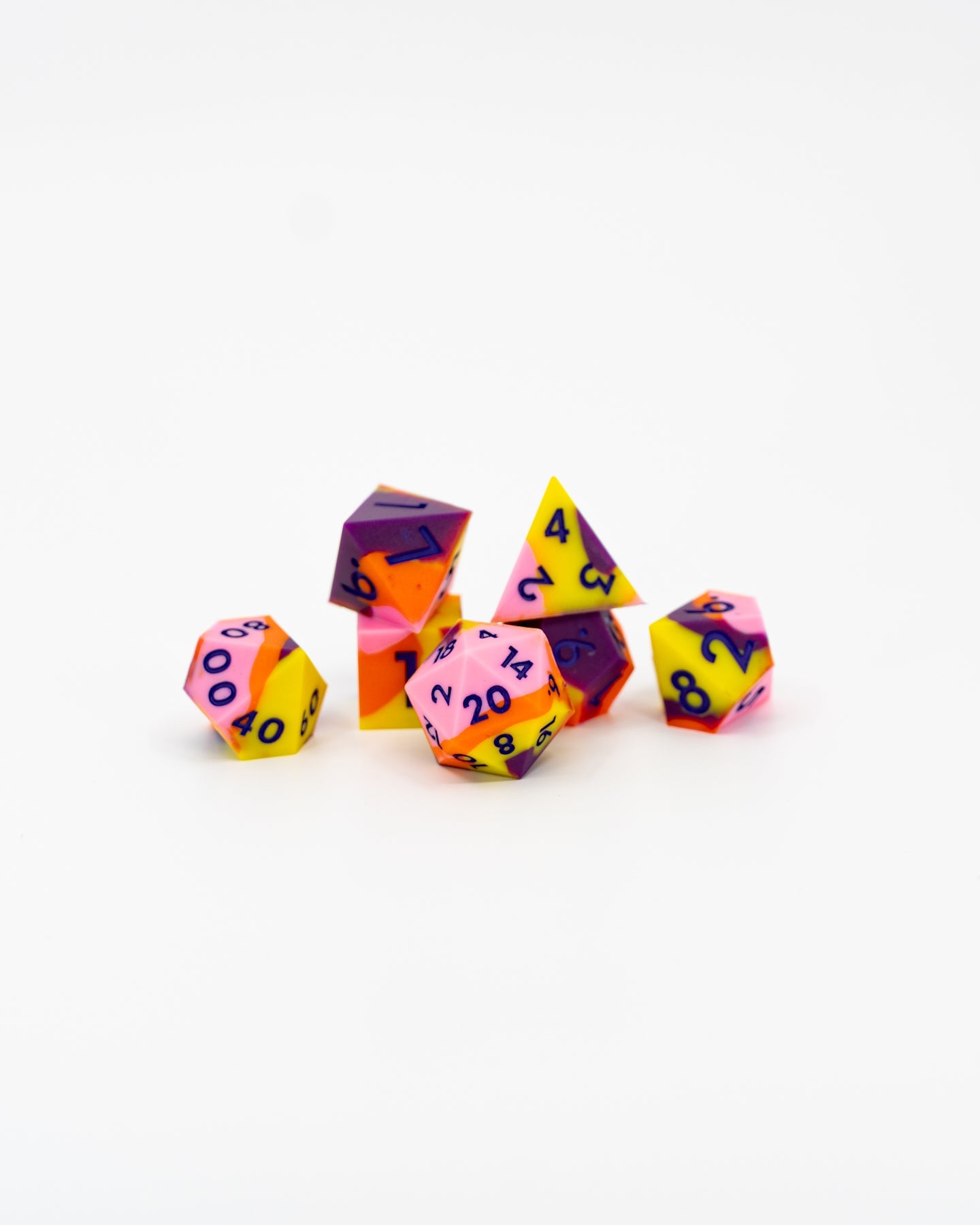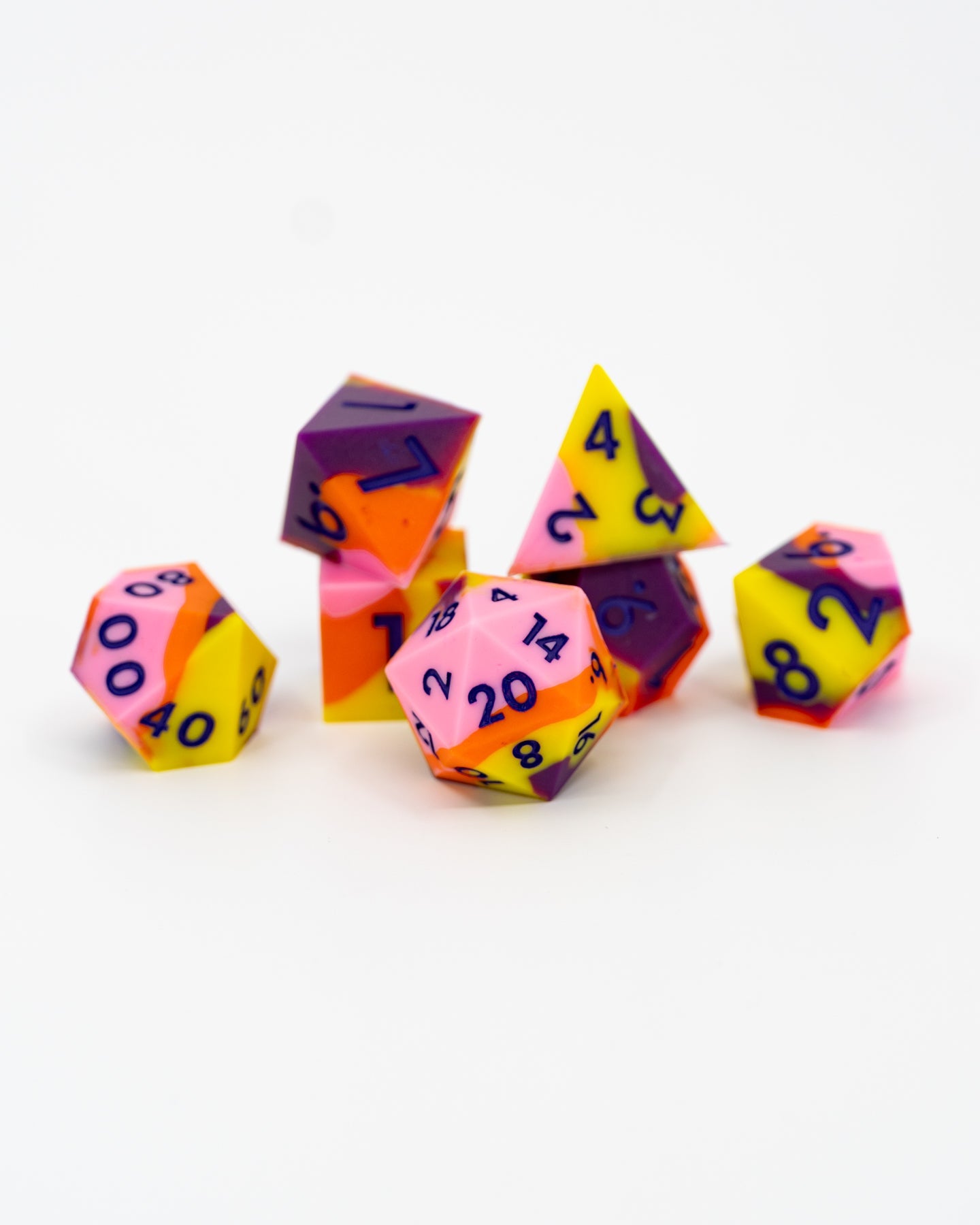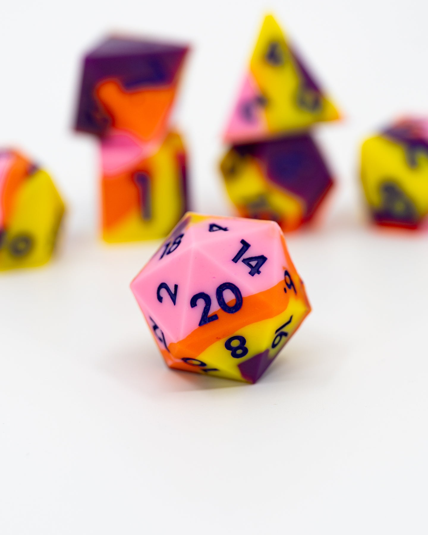 For the times where the line between your Feywild campaign and a skittles commercial is really blurry, we strongly recommend our rubberized silicone dice! Listed in stat blocks everywhere as polyhedrons of ridiculousness!