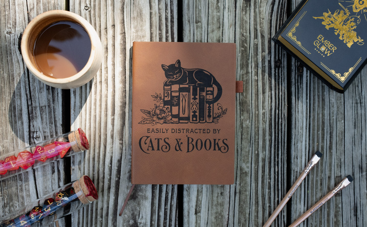 Easily Distracted By Cats And Books | Vegan Leather Mini Dot Journal