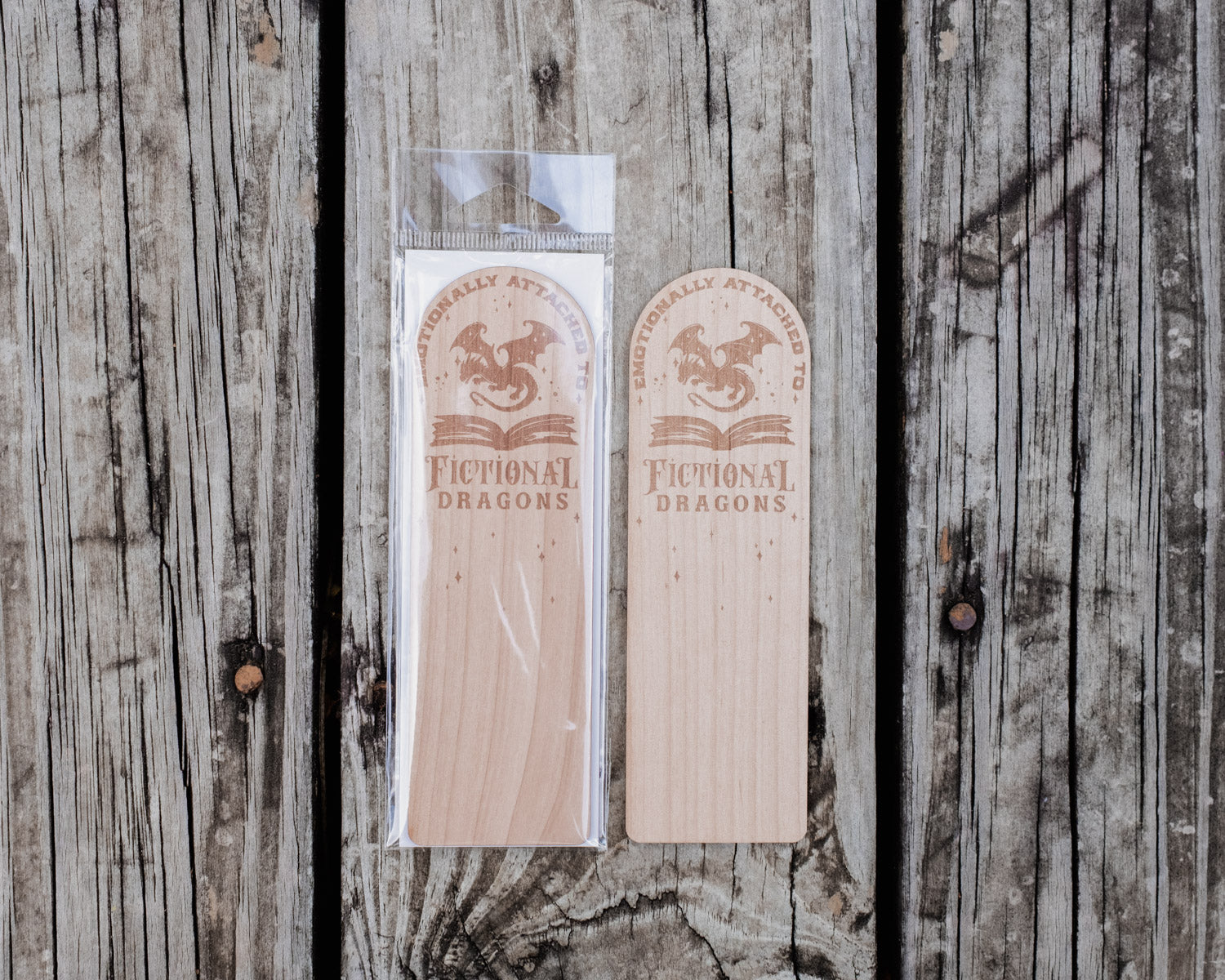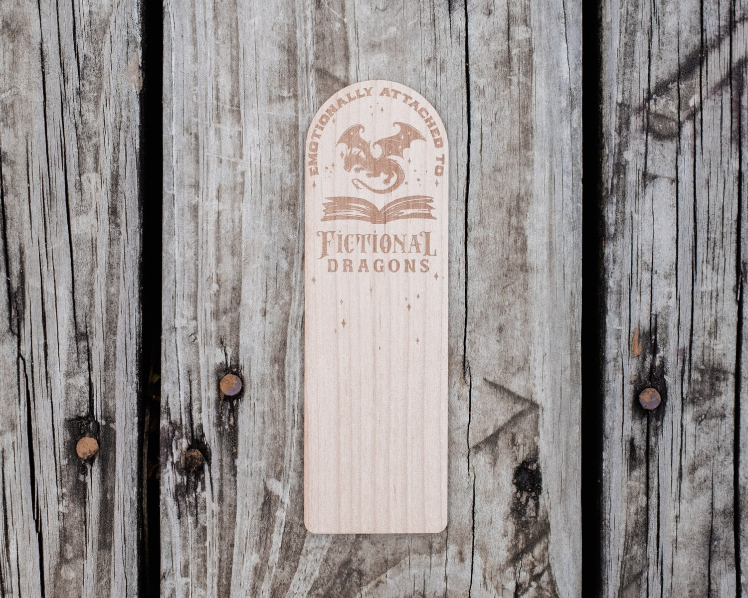 Emotionally Attached to Fictional Dragons | Engraved Wooden Bookmark