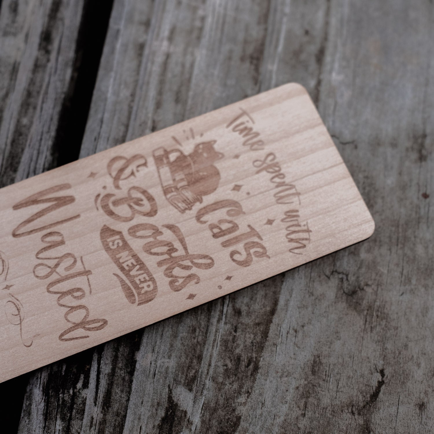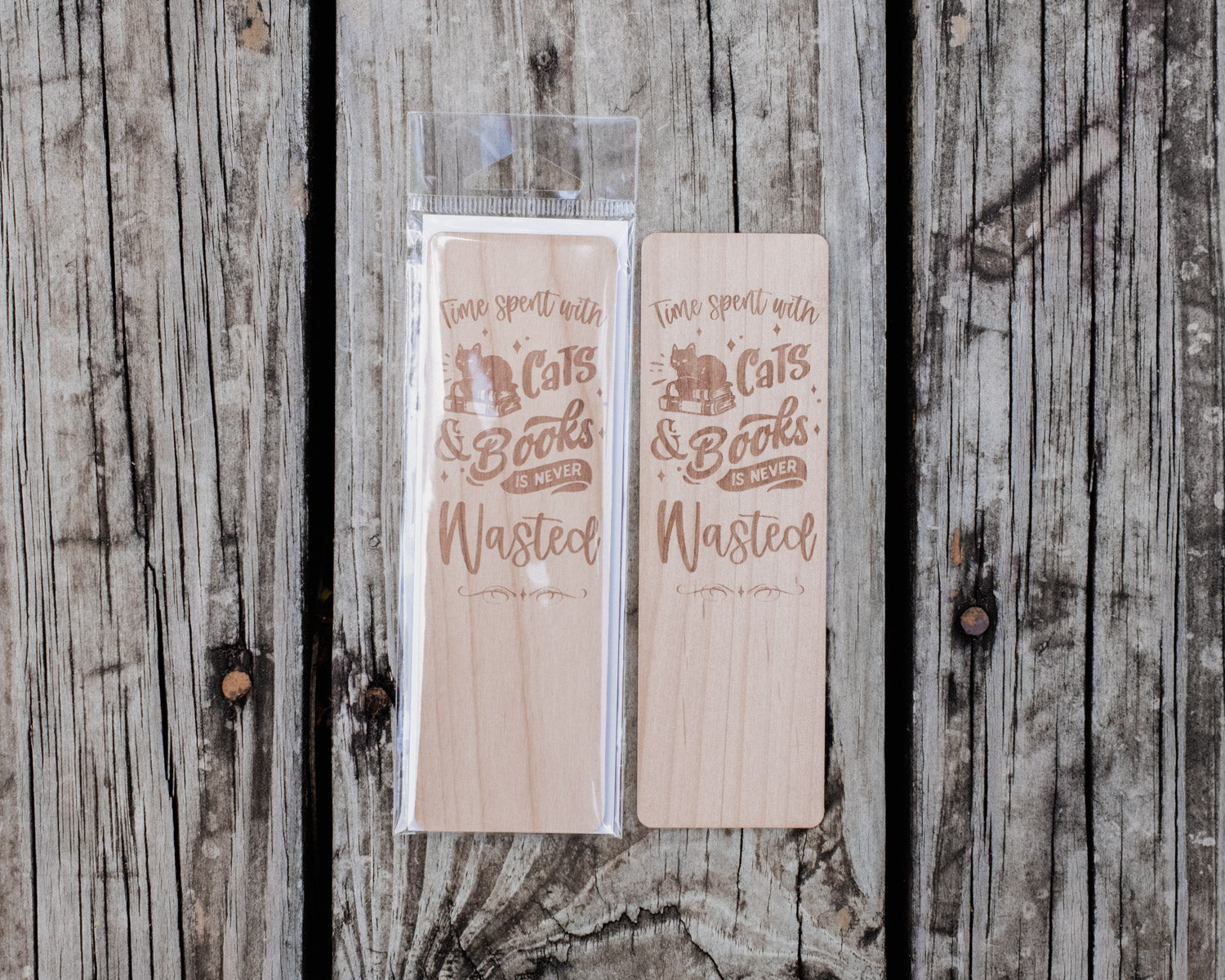 Every bookmark is engraved with love and laser beams in our studio in small-town Texas. We use 1/16" milled Alder wood for a slim but hardy raw wood finish.